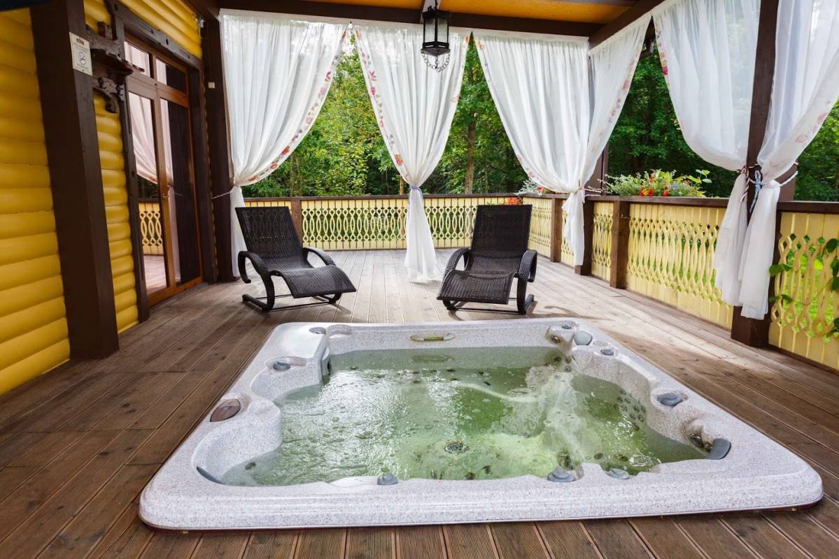 Гостиная, Есть веники, Тапочки, Простыни, Полотенца, Посуда, Чайная церемония, Ароматы для парной, Спа процедуры, Парильщик, Парковка, Парковый двор, С коттеджем на сутки, Гостиница, Беседка (Летняя веранда)